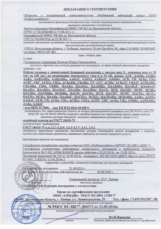 | Изоляция жилы: | Кабельная бумага пропитанная вязким изоляционным составом |