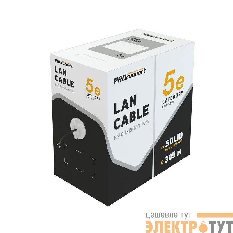 Кабель витая пара U/UTP черного цвета PROconnect предназначен для создания локальных сетей общего назначения, домашних сетей, сетей малого бизнеса, компьютерных сетей, сетей передачи данных, узкоспециализированных сетей. Применяется для подключения устройств охранной системы, телефонии, интернета, цифрового телевидения и т.д.