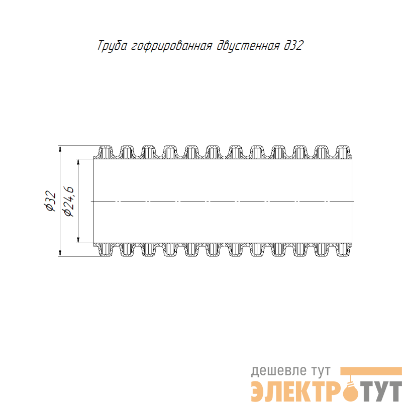 PR15.0322 | Труба гофрированная двустенная ПНД гибкая d32мм SN34 450 с протяжкой стойкая к УФ черн. (уп.20м) Промрукав