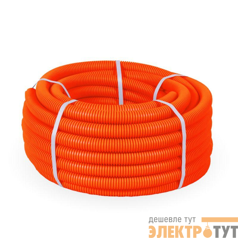 PR.022541о | Труба гофрированная ПНД тяжелая d25мм с протяжкой 750 Н безгалоген. (HF) оранж. (уп.50м) Промрукав
