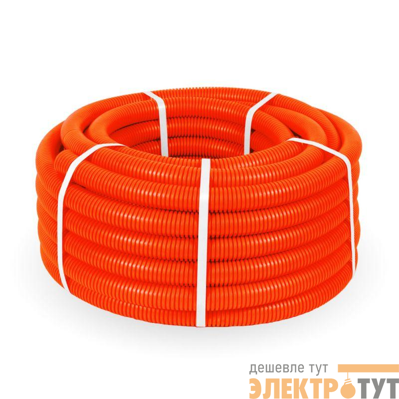 PR.023241о | Труба гофрированная ПНД тяжелая d32мм с протяжкой 750 Н безгалоген. (HF) оранж. (уп.25м) Промрукав