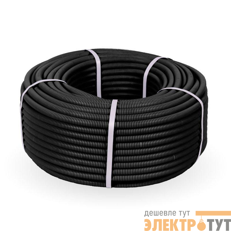 PR01.00385 | Труба гофрированная ПВХ легкая d16мм 350 Н черн. (уп.100м) Промрукав
