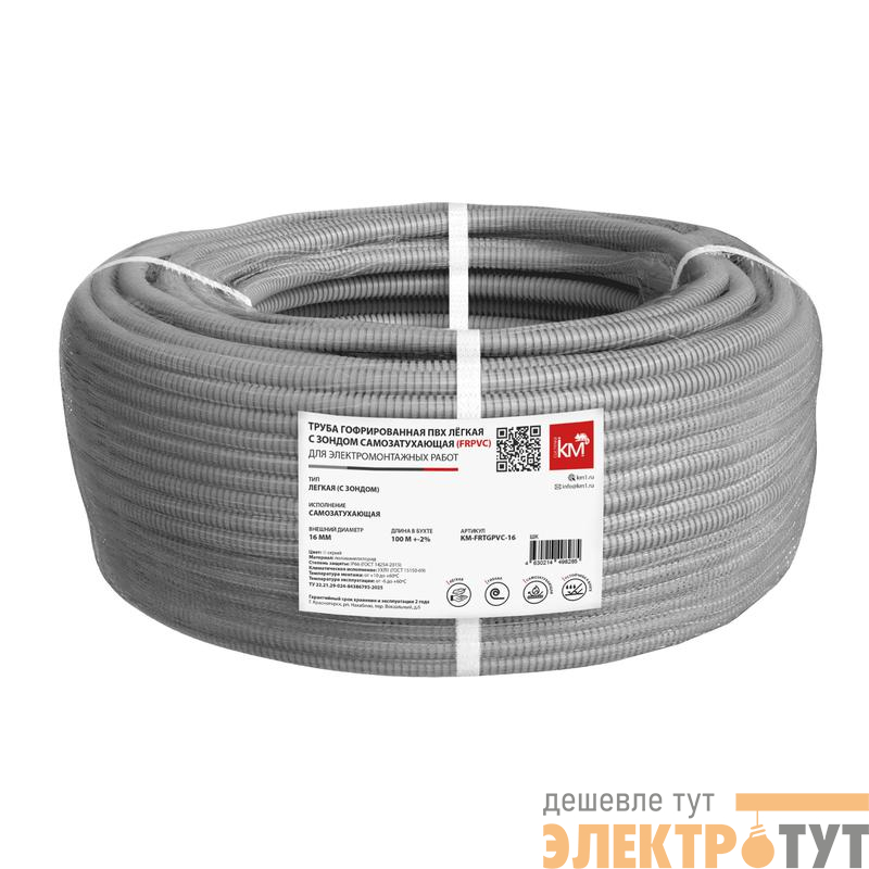 LO63884 | Труба гофрированная ПВХ легкая d25мм KM-FRTGPVC-25 с протяжкой самозатух. (уп.50м) КМ