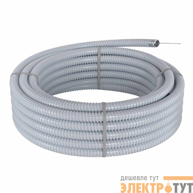 6071R-015100P | Металлорукав DN 15мм в герметичной ПВХ изоляции Dвн 15.5мм Dнар 19.5 с протяжкой 100м сер. DKC