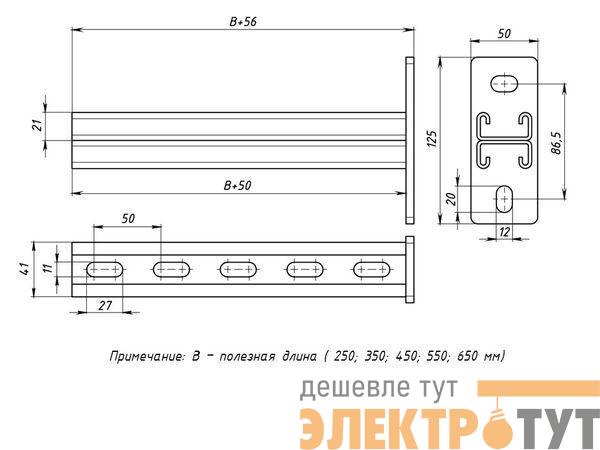 stkd412145-HDZ | Консоль STRUT двойная 41х21 L450 сталь HDZ гор. оцинк. EKF