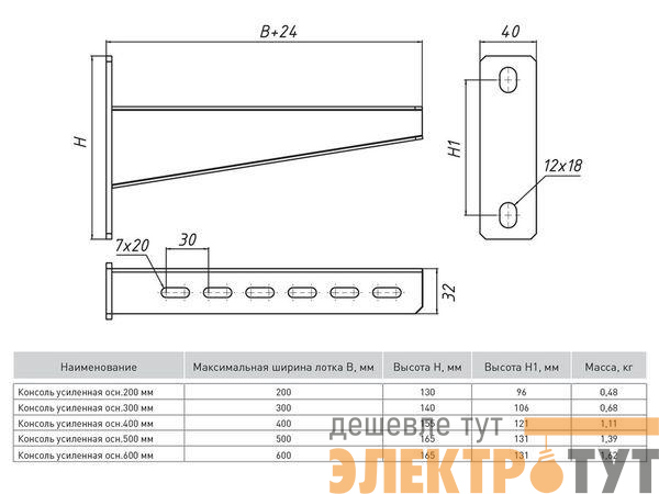 ky400 | Консоль усиленная осн.400 2.5мм сталь HDZ гор. оцинк. EKF