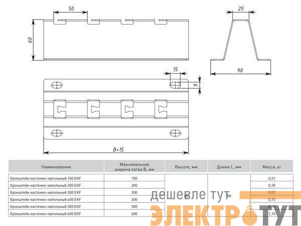 knn300 | Кронштейн настенный/напольный осн.300 сталь EKF