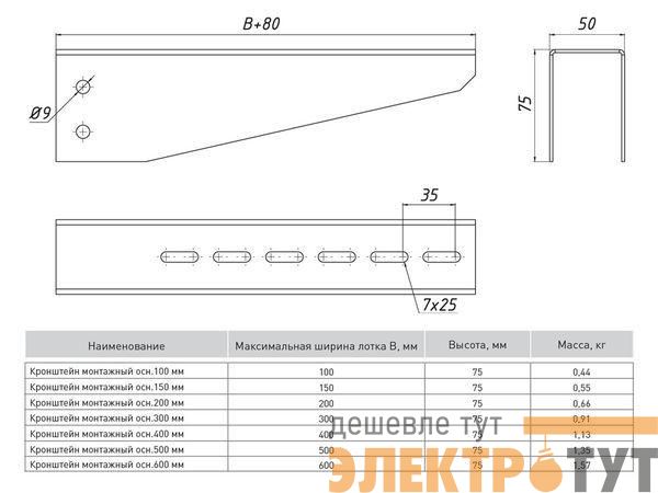km600 | Кронштейн монтажный осн.600 1.5мм сталь EKF