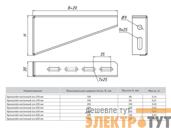 kn400 | Кронштейн настенный осн.400 2мм сталь EKF