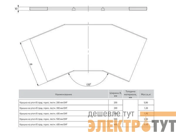 Крышка для угла горизонтального 45град. осн.600 EKF kglt45600