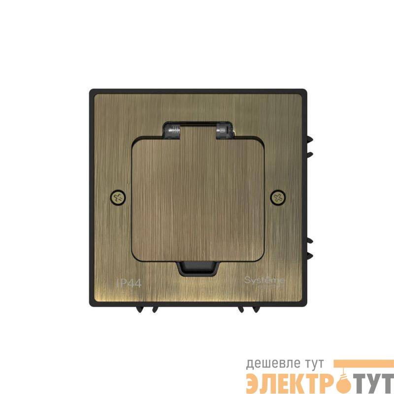 MDK21202BC | Лючок MultiDesk MDK21 с розеткой 2P+E 16А 250В IP44 с монтажной коробкой для бетонных полов античная латунь SE