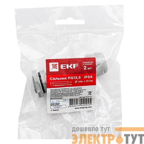 plc-pg-13.5-2-r | Сальник PG13.5 d6-12мм (d отверст. 21мм) IP54 (уп.2шт) PROxima EKF