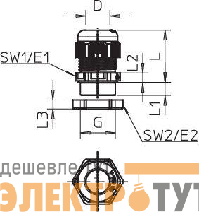 Прочный кабельный ввод в комплекте с контргайкой, с метрической соединительной резьбой в соответствии с требованиями МЭК 423. Кабельный ввод обеспечивает высокую герметичность. Разгрузка от натяжения, защита от прокручивания и герметичность на всей област