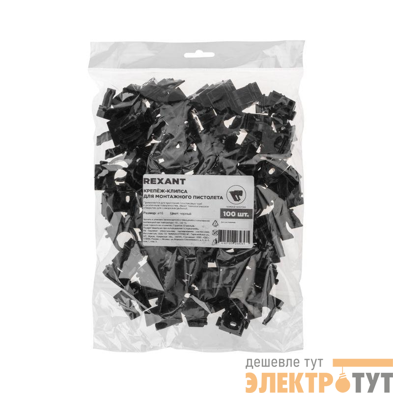 28-0416-2 | Держатель для труб (клипса) d16мм для монтажного пистолета черн. Rexant