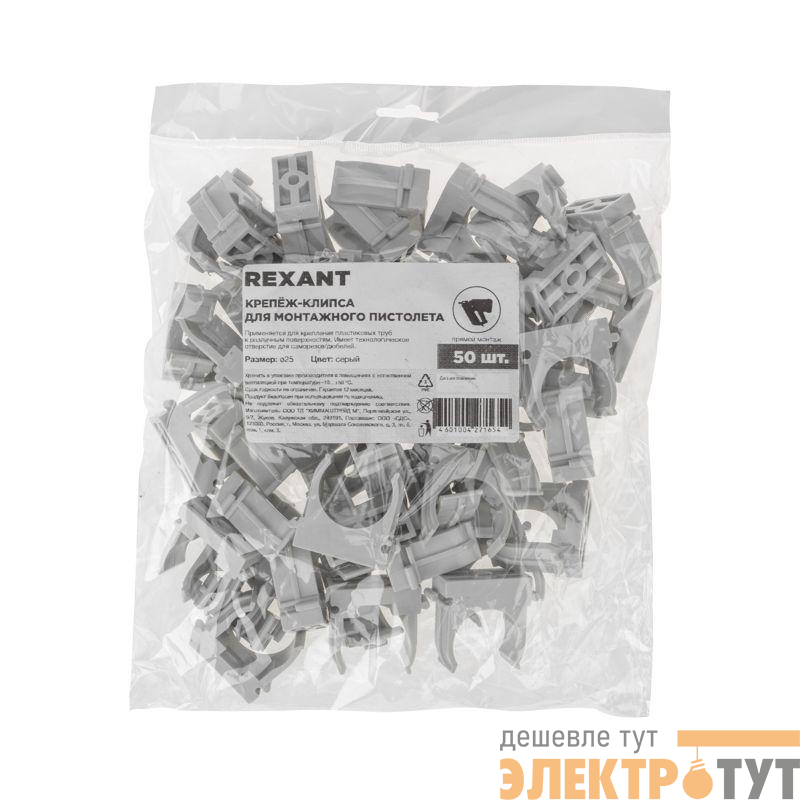 28-0425-1 | Держатель для труб (клипса) d25мм для монтажного пистолета сер. Rexant