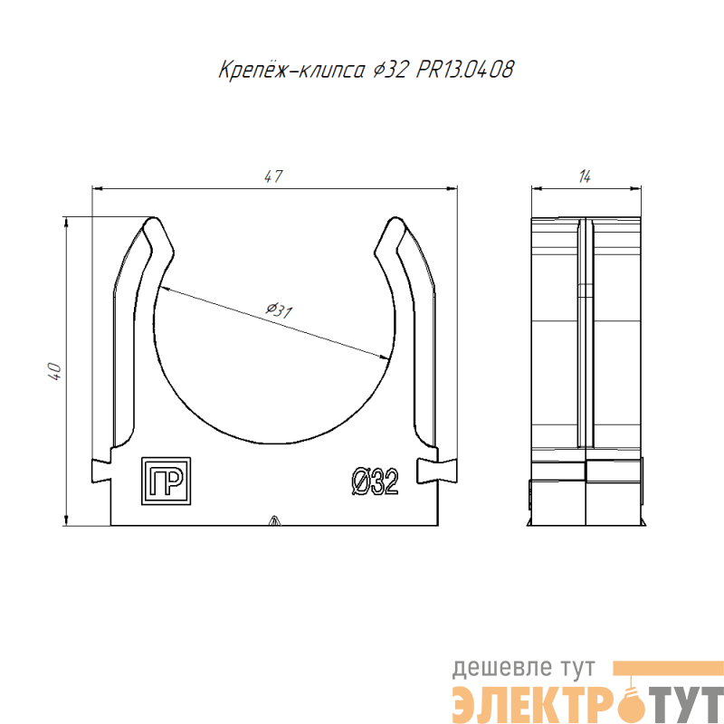 PR13.0408 | Держатель для труб (клипса) d32мм для монтажного пистолета атмосферостойкая черн. Промрукав
