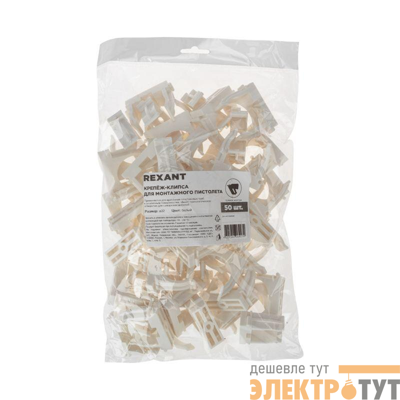 28-0432-3 | Держатель для труб (клипса) d32мм для монтажного пистолета бел. Rexant