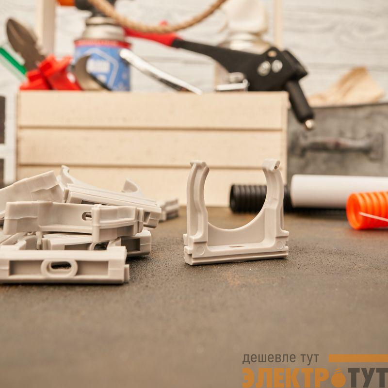 28-0140-4 | Держатель для труб (клипса) d40мм сер. (уп.5шт) Rexant