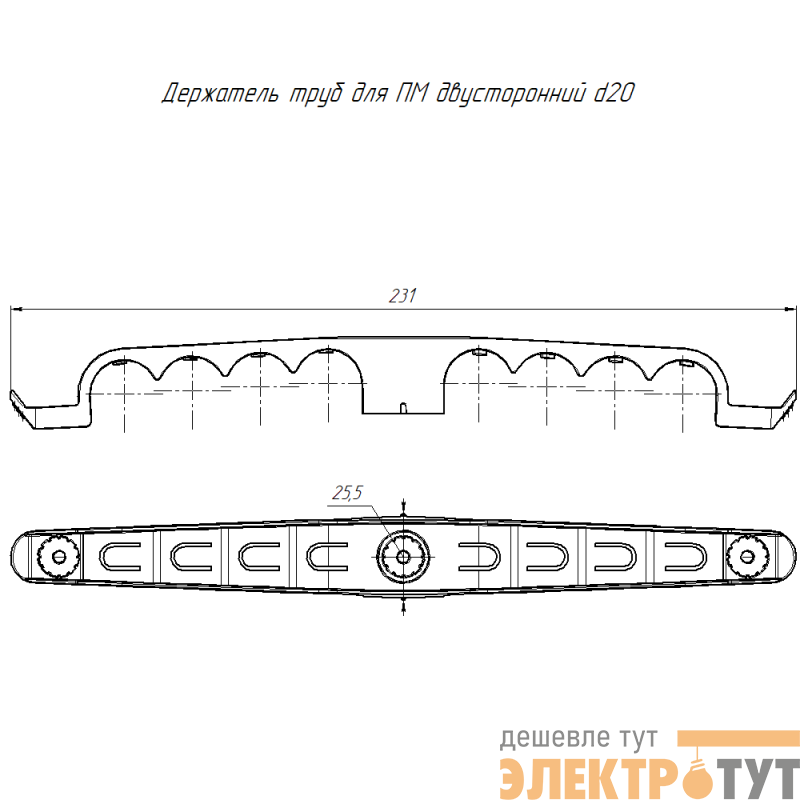 PR13.03295 | Держатель труб d20мм для прямого монтажа двусторон. на 8 мест черн. (уп.20шт) Промрукав