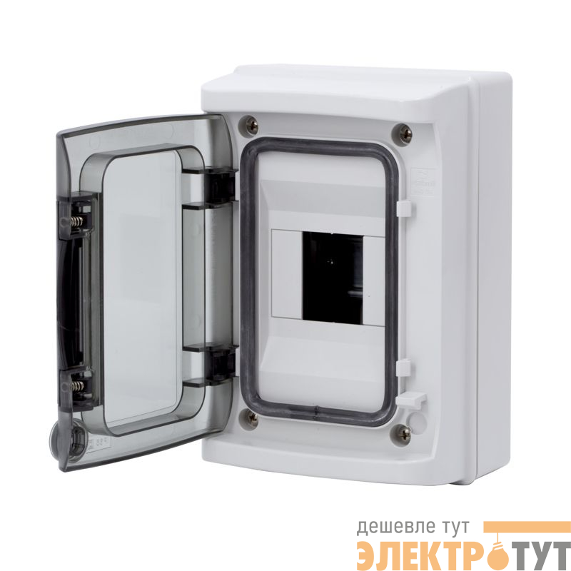 Настенный модульный щиток с прозрачной затемненной дверцей. Предназначен для монтажа в жилых и административных помещениях для установки автоматических выключателей любых производителей: таймеров, устройств защитного отключения и управления освещением и т.д. В комплект поставки входят: ручка на дверце, оцинкованная DIN-рейка, заглушки для пустых модулей, сборочные винты. Степень пыле- и влагозащиты IP 65. Ударопрочность корпуса IK09. Количество модулей - 4. Параметры щитка: ширина - 142 мм, высота - 210 мм, глубина - 100 мм. Материал - термостойкий пластик. Цвет - серый..