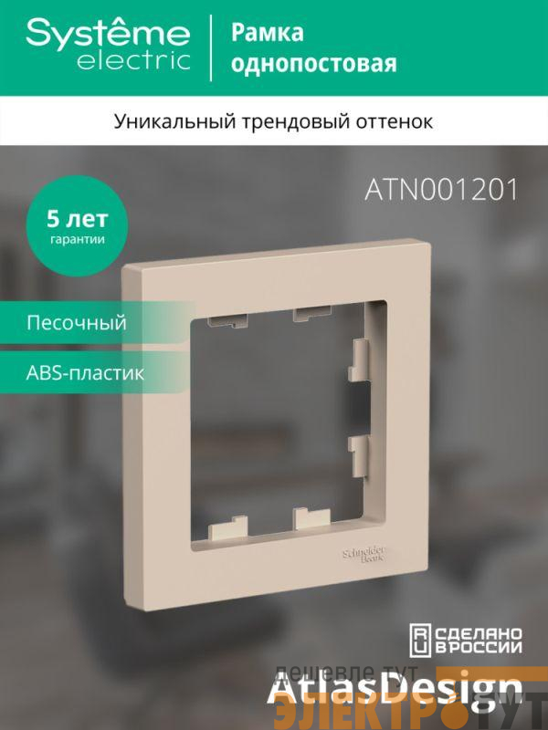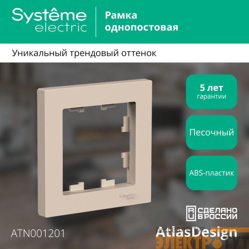 Рамка Systeme Electric (ранее Schneider Electric) серии AtlasDesign в цвете ПЕСОЧНЫЙ одинарная.