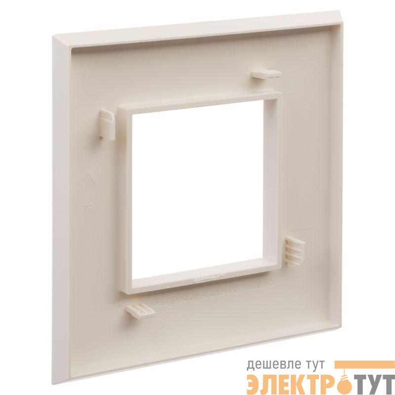 Рамка рассчитана на установку одного изделия (максимум 2 модуля). Допустимо размещать рамку как горизонтально, так и вертикально. Габаритные размеры: 90х90 мм. Материал – термопласт.