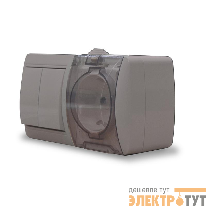 К2239-Gr | Блок ОП Клио 2-кл. выкл. 10А + розетка 1-м 16А 250В с заземл. с прозр. крышкой сер. Universal