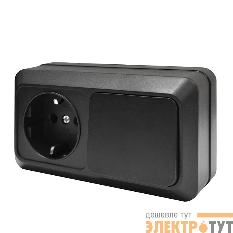 7946806 | Блок ОП Олимп 1-кл. выкл.10А + роз. с заземл. 16А 220В горизонт. черн. Universal