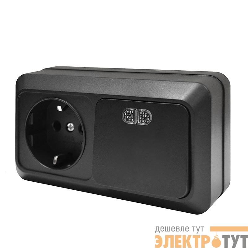 7946808 | Блок ОП Олимп 1-кл. выкл. с подсветкой 10А + роз. с заземл. 16А 220В горизонт. черн. Universal