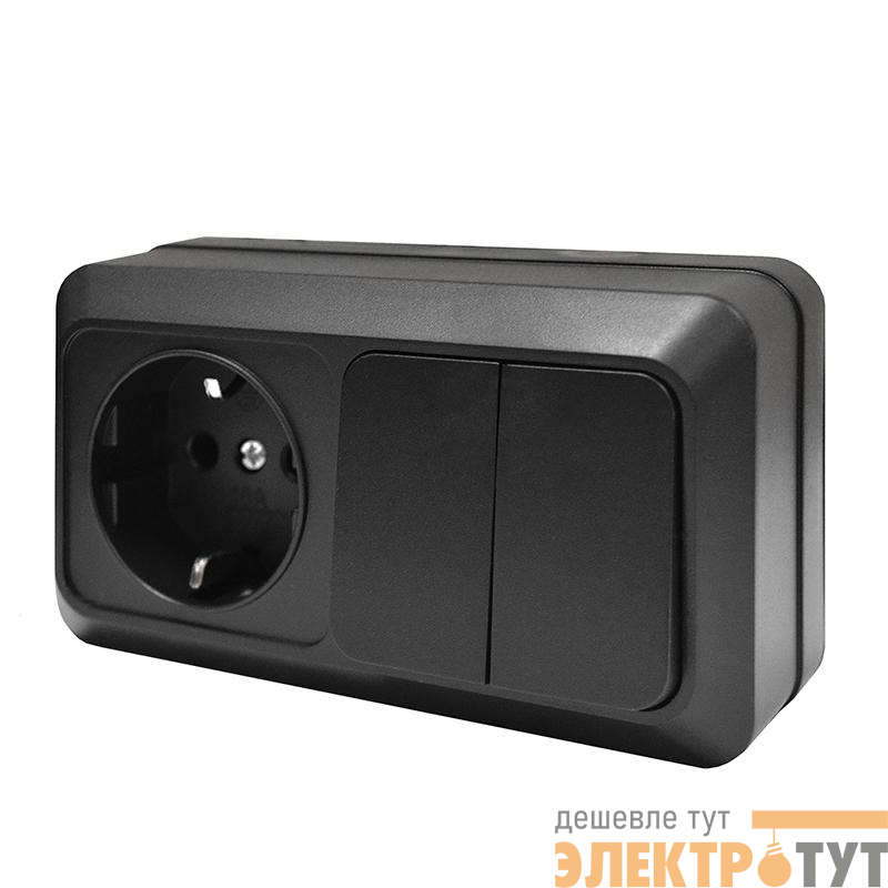 7946810 | Блок ОП Олимп 2-кл. выкл. 10А + роз. с заземл. 16А 220В горизонт. черн. Universal