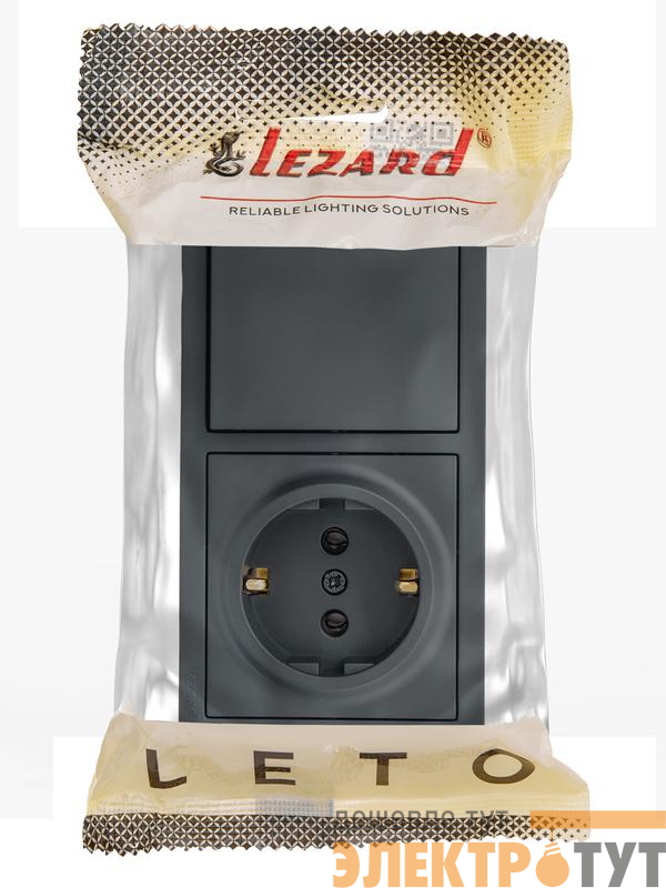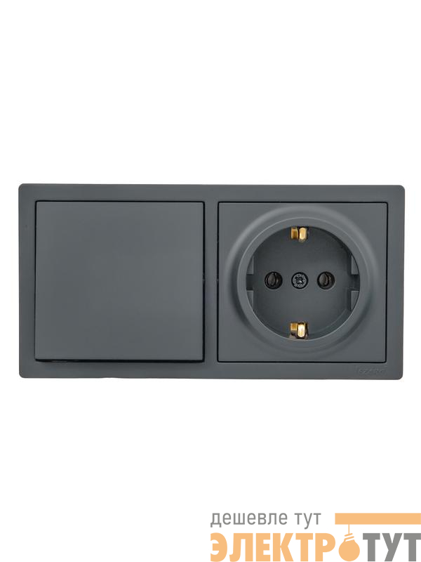 752-3400-170BAP | Блок выключатель 1-клав. и розетка 1-местн с заземл. LETO графит горизонталь LEZARD