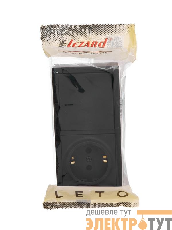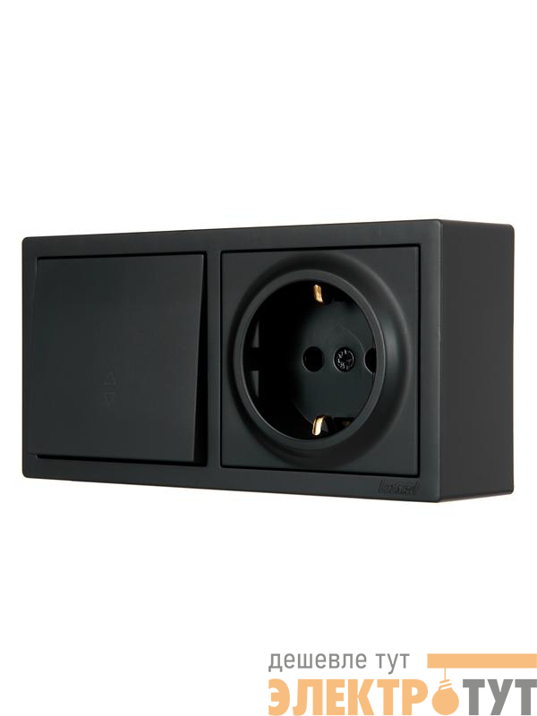752-4200-170BVP | Блок выключатель 1-клав. проходной и розетка 1-местн с заземл. LETO черн. бархат горизонталь LEZARD