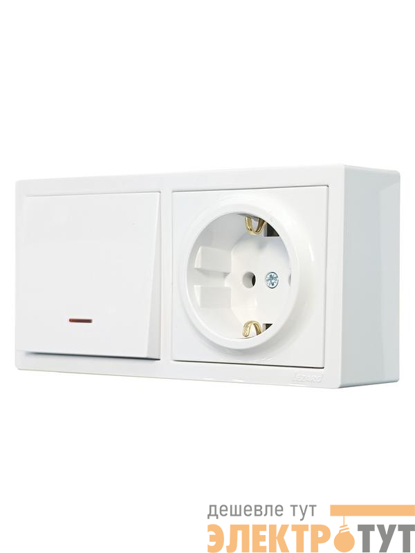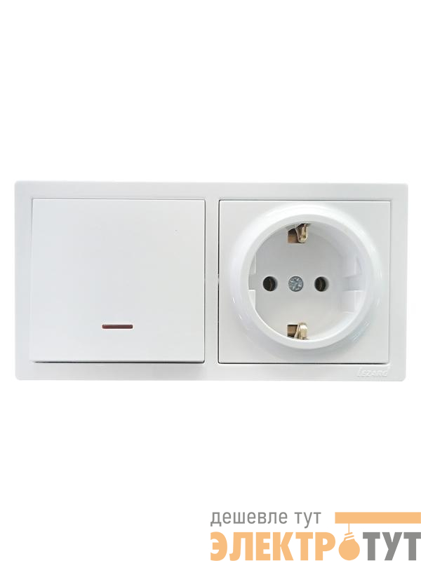 752-0200-170BIP | Блок ОП LETO (1-кл. выключатель с индикацией + 1-м розетка с заземл.) горизонт. бел. LEZARD