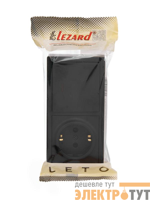 752-4200-170BIP | Блок выключатель 1-клав. с инд. и розетка 1-местн с заземл. LETO черн. бархат горизонталь LEZARD