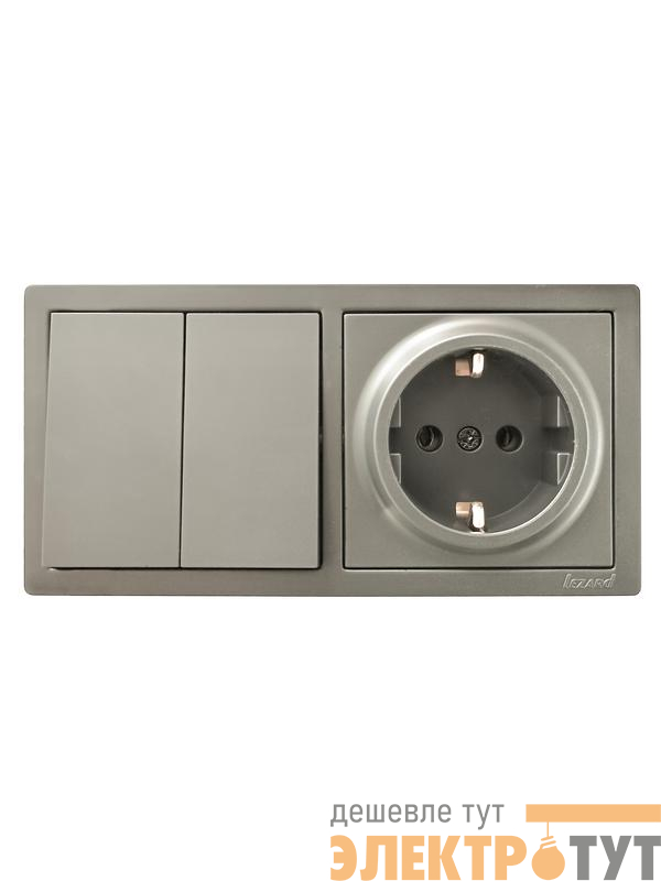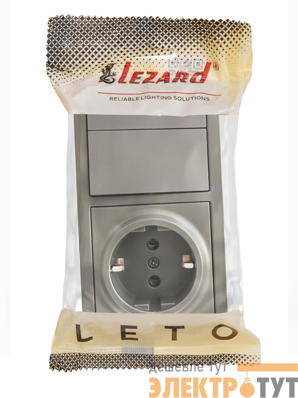 752-3500-170BKP | Блок ОП LETO (2-кл. выключатель + 1-м розетка с заземл.) горизонт. платина LEZARD