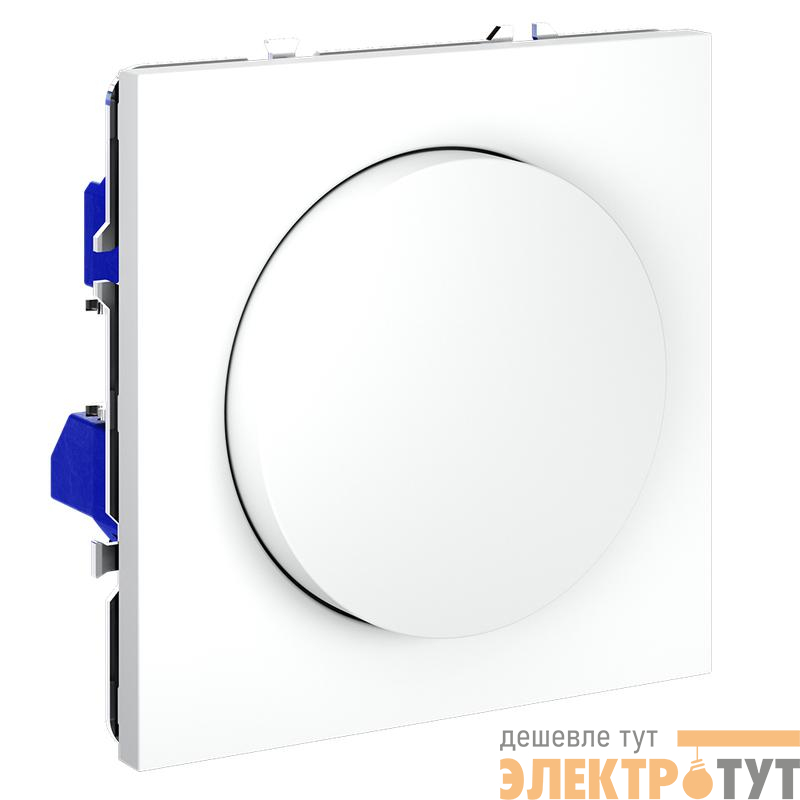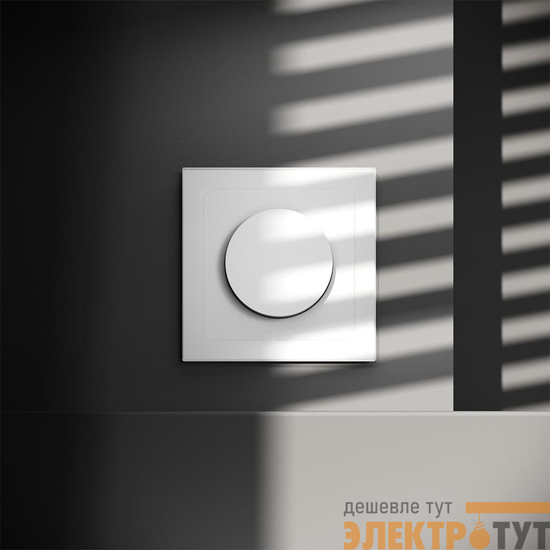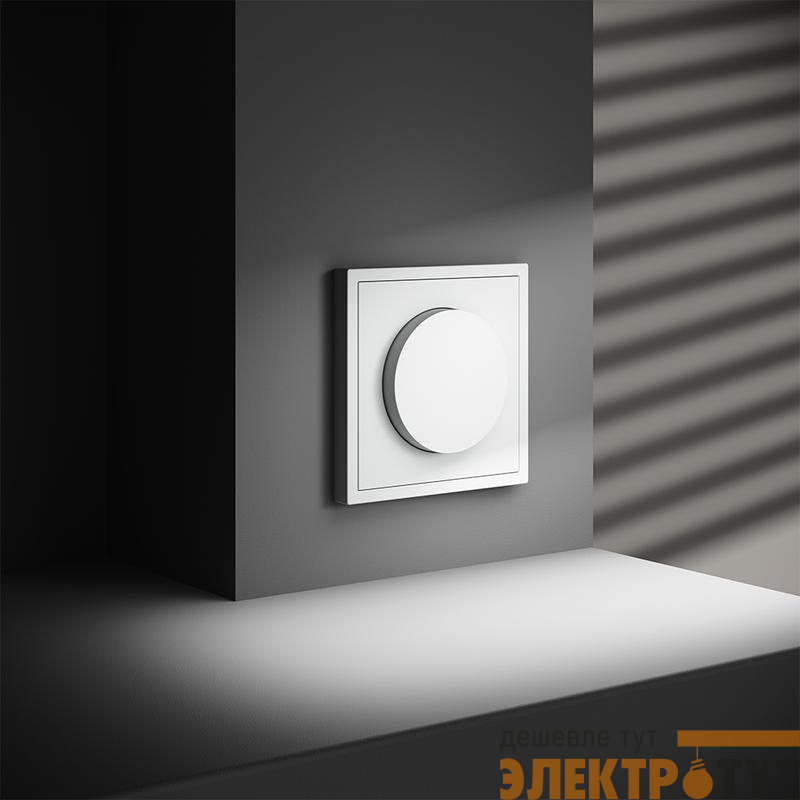 Место установки. Светорегулятор необходим для управления яркостью освещения в помещении. Устройство совместимо с любым источником света, поддерживающим фазное диммирование. Корпус. Светорегулятор выполнен в виде вращающейся кнопки, позволяющей регулировать яркость в широком диапазоне. При нажатии на нее устройство работает как выключатель (включает/выключает освещение). Корпус — устойчивый к повреждениям и нагреву поликарбонат. Конструктивные особенности. Максимальная резистивная нагрузка светорегулятора — 300 Вт, минимальная — 5 Вт. Можно подключить устройство как обычный выключатель или по проходной схеме. Диммирование базируется на методе отсечения по заднему фронту, что гарантирует совместимость со светодиодными лампами и исключает появление резких колебаний напряжения. Ток увеличивается плавно, что особенно важно для сохранения производительности и долговечности светодиодных источников. Предусмотрена регулировка ограничения минимального уровня яркости (под накладкой механизма).