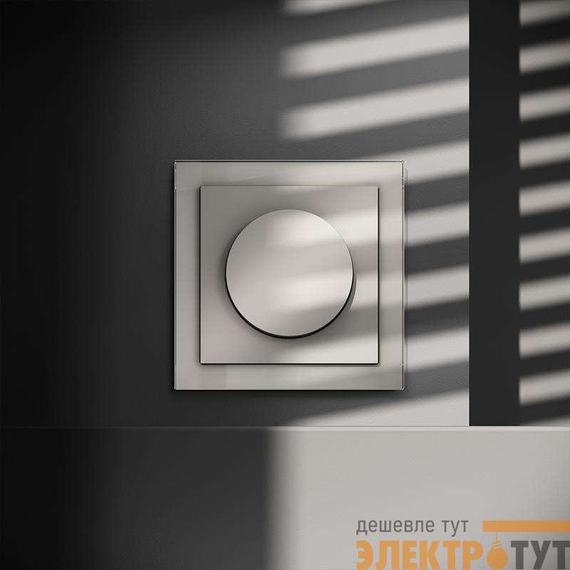 Место установки. Светорегулятор необходим для управления яркостью освещения в помещении. Устройство совместимо с любым источником света, поддерживающим фазное диммирование. Корпус. Светорегулятор выполнен в виде вращающейся кнопки, позволяющей регулировать яркость в широком диапазоне. При нажатии на нее устройство работает как выключатель (включает/выключает освещение). Корпус — устойчивый к повреждениям и нагреву поликарбонат. Конструктивные особенности. Максимальная резистивная нагрузка светорегулятора — 300 Вт, минимальная — 5 Вт. Можно подключить устройство как обычный выключатель или по проходной схеме. Диммирование базируется на методе отсечения по заднему фронту, что гарантирует совместимость со светодиодными лампами и исключает появление резких колебаний напряжения. Ток увеличивается плавно, что особенно важно для сохранения производительности и долговечности светодиодных источников. Предусмотрена регулировка ограничения минимального уровня яркости (под накладкой механизма).