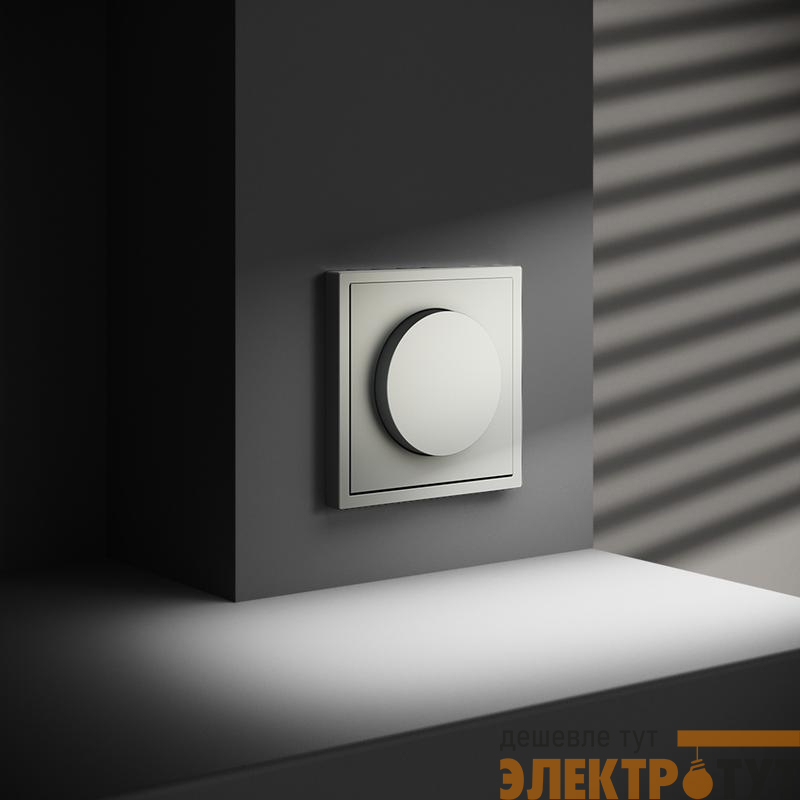 Место установки. Светорегулятор необходим для управления яркостью освещения в помещении. Устройство совместимо с любым источником света, поддерживающим фазное диммирование. Корпус. Светорегулятор выполнен в виде вращающейся кнопки, позволяющей регулировать яркость в широком диапазоне. При нажатии на нее устройство работает как выключатель (включает/выключает освещение). Корпус — устойчивый к повреждениям и нагреву поликарбонат. Конструктивные особенности. Максимальная резистивная нагрузка светорегулятора — 300 Вт, минимальная — 5 Вт. Можно подключить устройство как обычный выключатель или по проходной схеме. Диммирование базируется на методе отсечения по заднему фронту, что гарантирует совместимость со светодиодными лампами и исключает появление резких колебаний напряжения. Ток увеличивается плавно, что особенно важно для сохранения производительности и долговечности светодиодных источников. Предусмотрена регулировка ограничения минимального уровня яркости (под накладкой механизма).