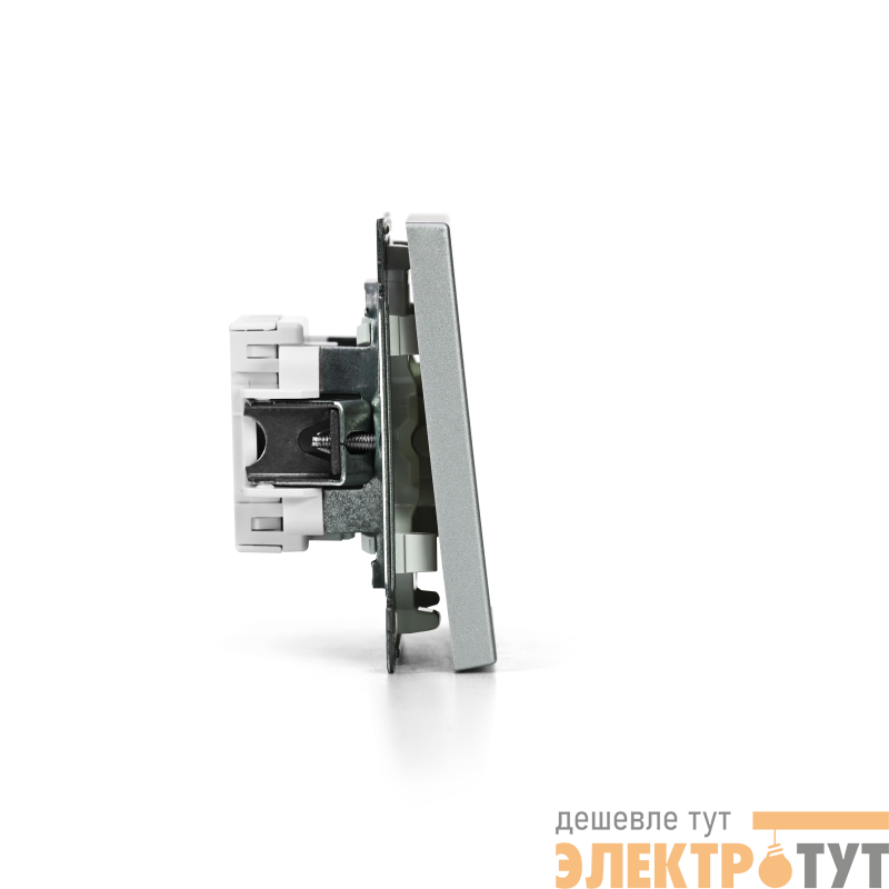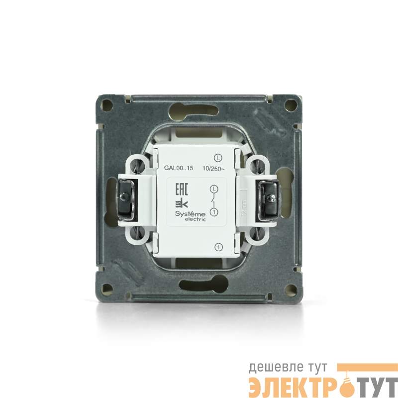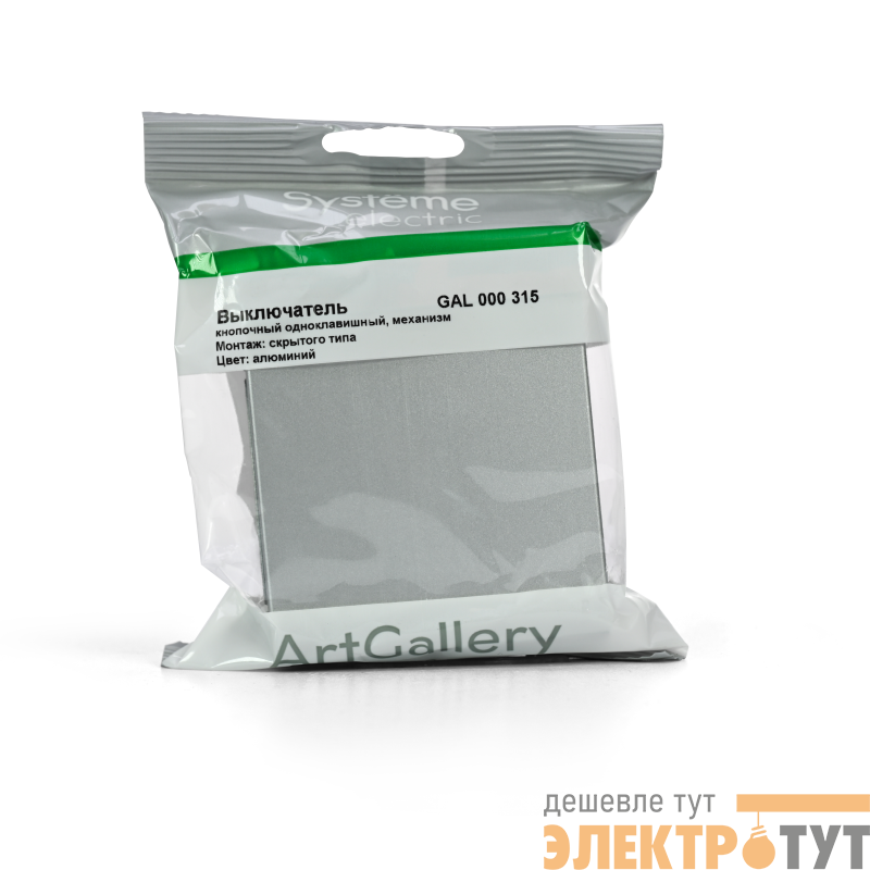 Механизм Systeme Electric серии ArtGallery в цвете алюминий выключателя 1-клавишного с самовозвратом подходит для сетей 250 В, на ток 10 А.