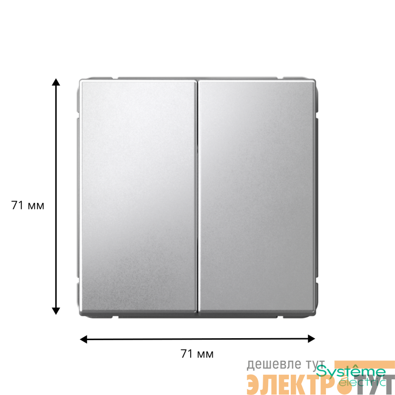 Механизм Systeme Electric серии ArtGallery в цвете алюминий выключателя 2-клавишного с самовозвратом подходит для сетей 250 В, на ток 10 А.