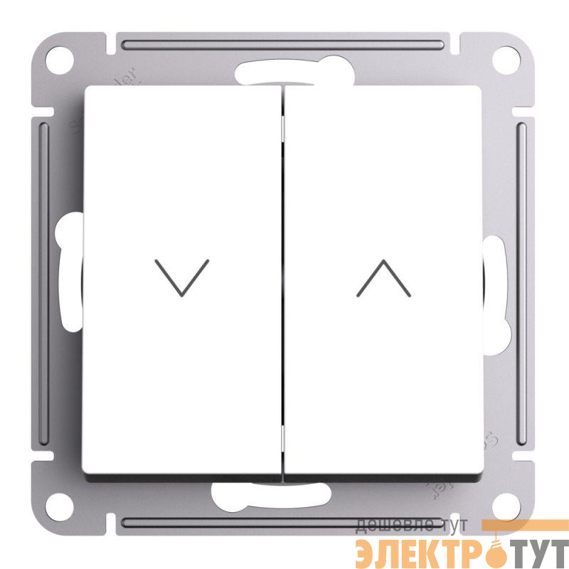 Механизм выключателя жалюзи 2-клавишного Systeme Electric (ранее Schneider Electric) серии AtlasDesign в цвете белый подходит для сетей 250 В, на ток 10 А.