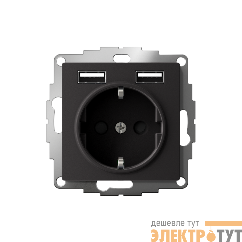 ATN001030 | Розетка 1-м СП AtlasDesign 16А IP20 с 2-мя заряд. устройствами USB тип A+A 5В/2.4А 2х5В/1.2А механизм карбон SE