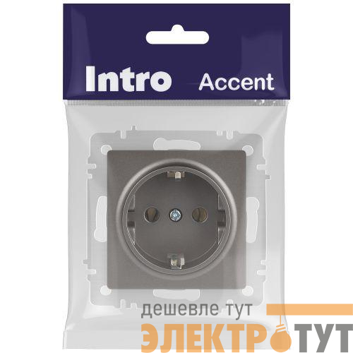 Б0063701 | Розетка 1-м СП Accent 6-202-09 16А IP20 250В 2P+E Schuko титан Intro