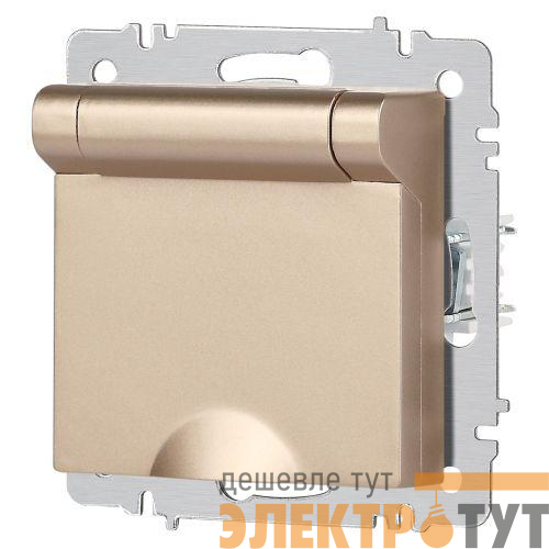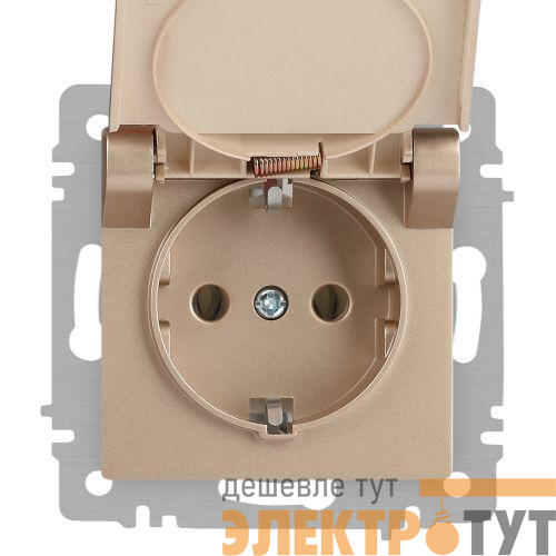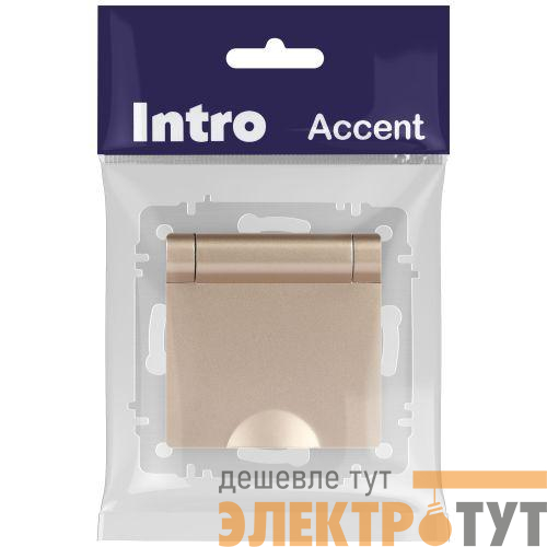 Б0063738 | Розетка 1-м СП Accent 6-203-04 16А IP20 250В 2P+E Schuko с крышкой шампань Intro