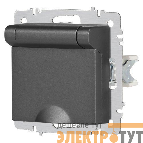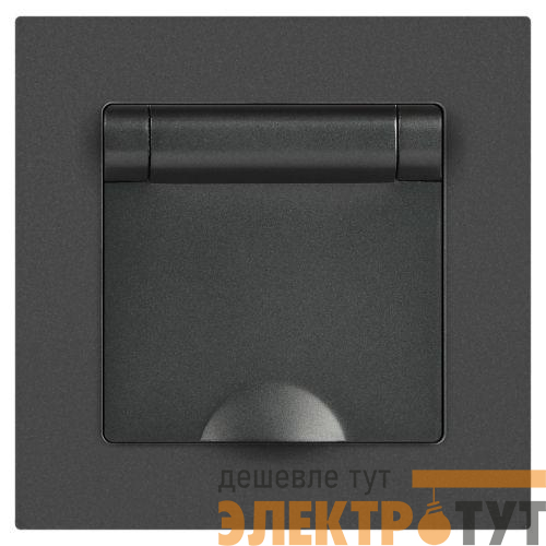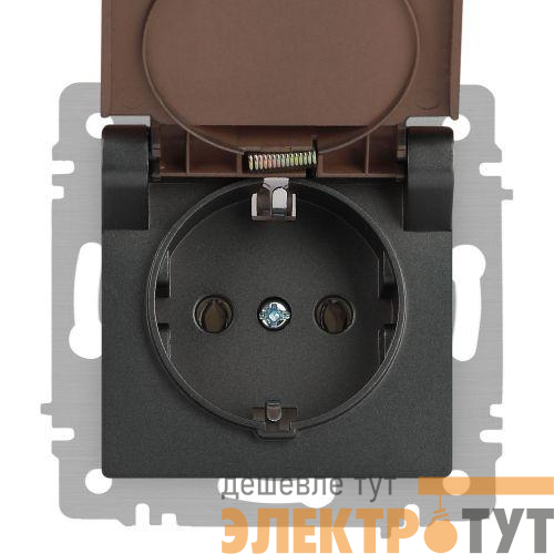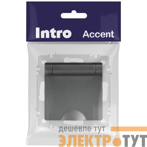 Б0063441 | Розетка 1-м СП Accent 6-203-07 16А IP20 250В 2P+E Schuko с крышкой AL/CU графит Intro
