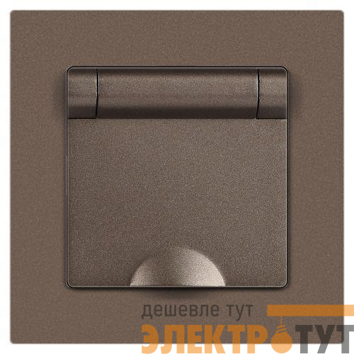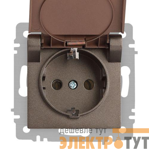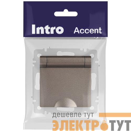 Б0063436 | Розетка 1-м СП Accent 6-203-08 16А IP20 250В 2P+E Schuko с крышкой AL/CU Accent бронза Intro