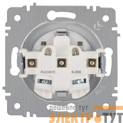 Б0063506 | Розетка 1-м СП Accent 6-206-01 16А IP20 250В 2P+E Schuko защ. шторки AL/CU бел. Intro