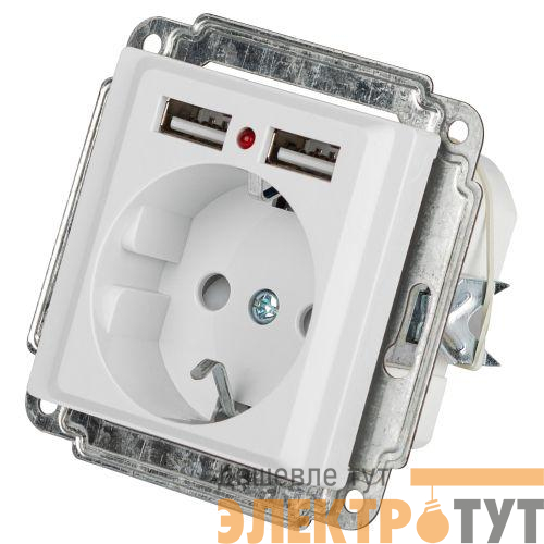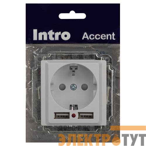 Б0063689 | Розетка 1-м СП Accent 6-410-01 16А IP20 250В P+E Schuko защ. шторки + 2хUSB бел. Intro