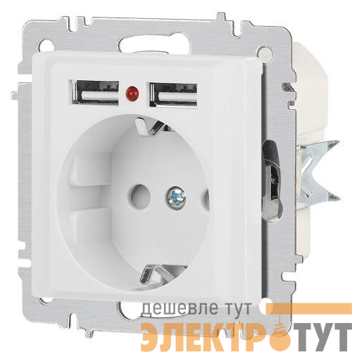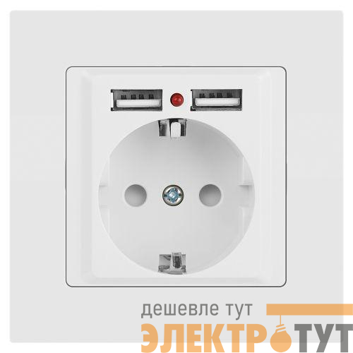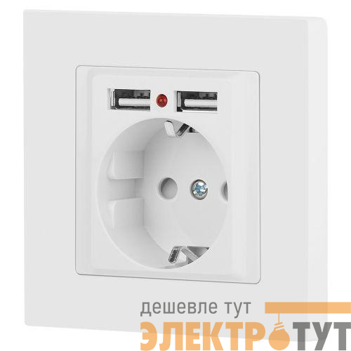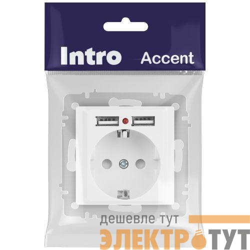Б0063691 | Розетка 1-м СП Accent 6-410-01М 16А IP20 250В P+E Schuko защ. шторки + 2хUSB бел. матов. Intro