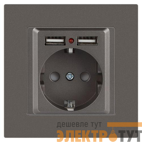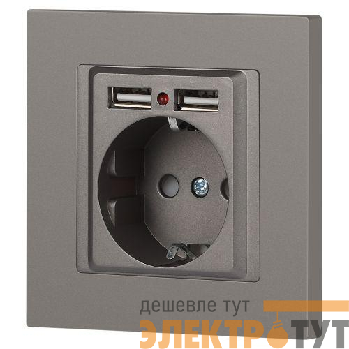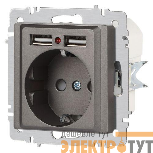 Б0063711 | Розетка 1-м СП Accent 6-410-09 16А IP20 250В P+E Schuko + 2хUSB защ. шторки титан Intro